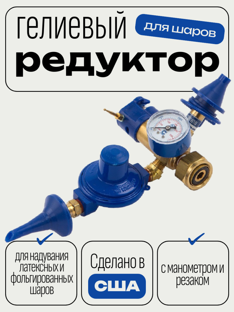 Редуктор гелиевый для шариков с клапаном, манометром и редуктором Конвин США
