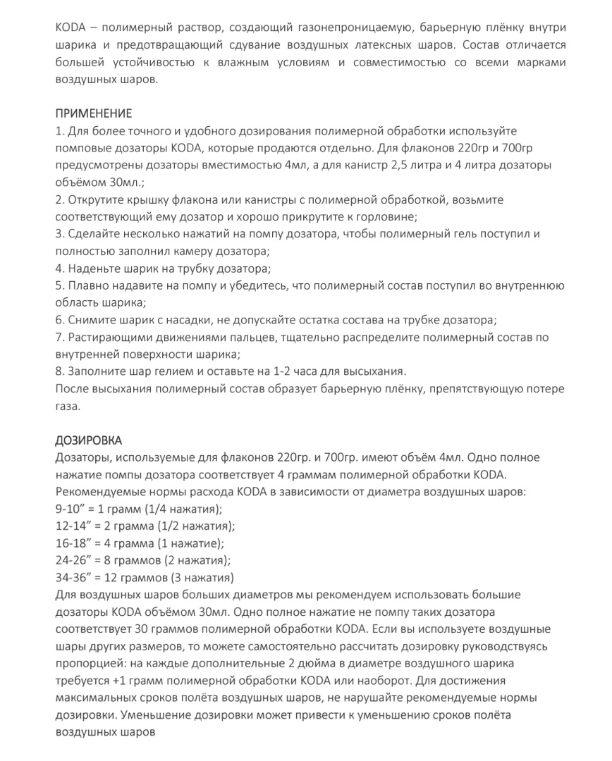 Придайте вашим воздушным шарам невероятную легкость и стойкость с дозатором для геля KODA, идеально подходящим для использования с 2,5 и 4-литровыми упаковками. Этот эффективный аксессуар сможет значительно продлить жизнь ваших шары благодаря высококачественному полимерному гелю, который способствует обработке и защите шаров. Применяя гель для воздушных шаров Koda, вы обеспечите им стойкость к спаду и поможете избежать преждевременного сдувания.Дозатор подойдет как для профессионального, так и для любительского использования, предлагая удобное и простое решение для хранения и нанесения.