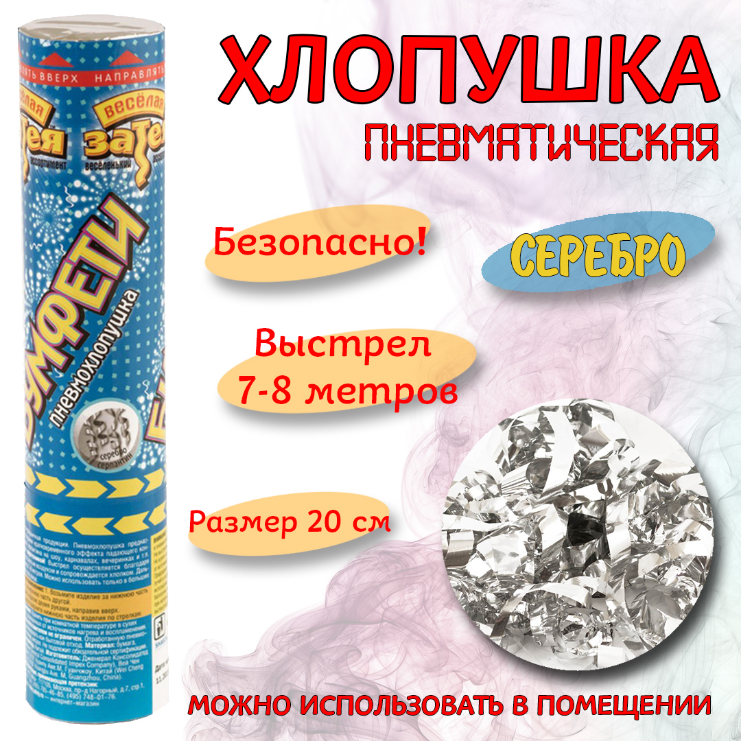 Пневмохлопушка 20см серпантин серебро