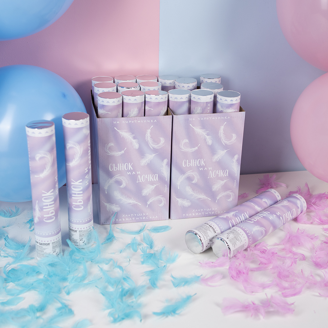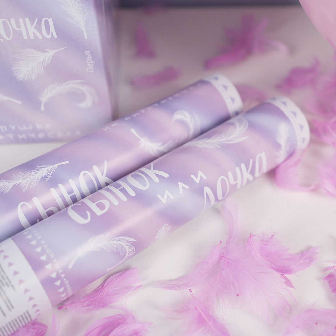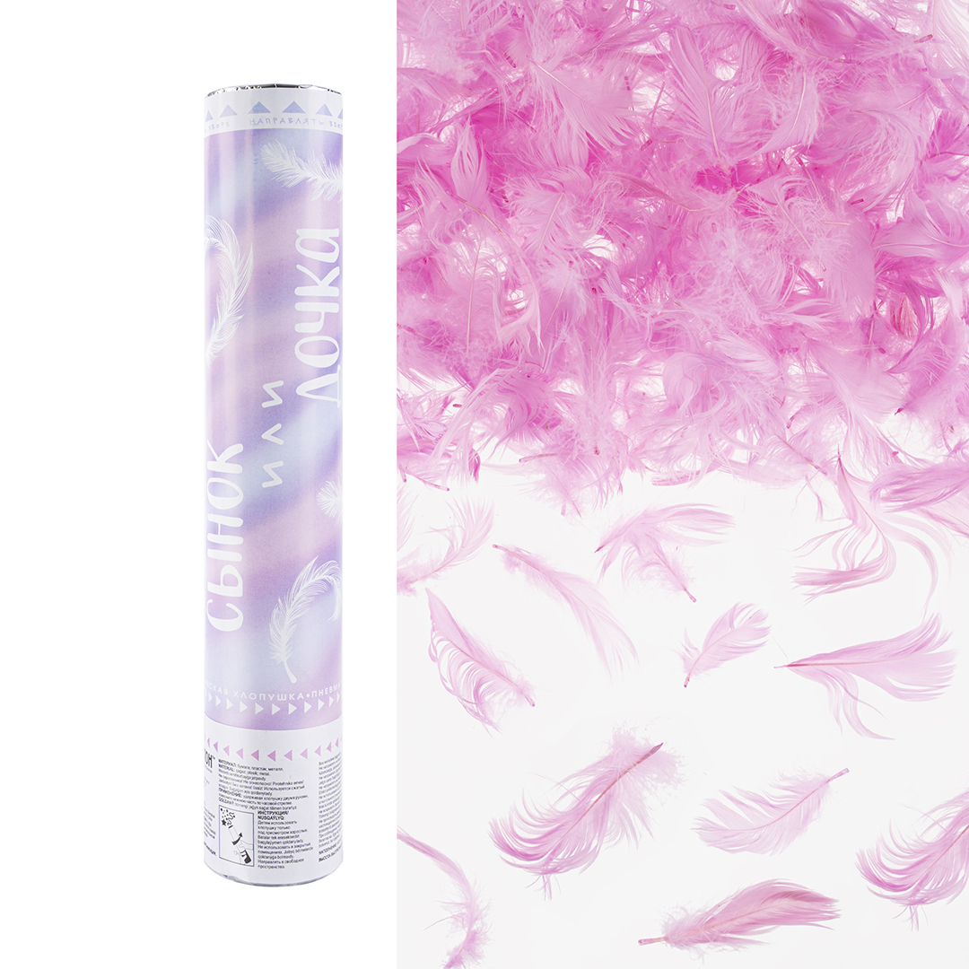 Пневмохлопушка 30см Гендер Пати перья розовый