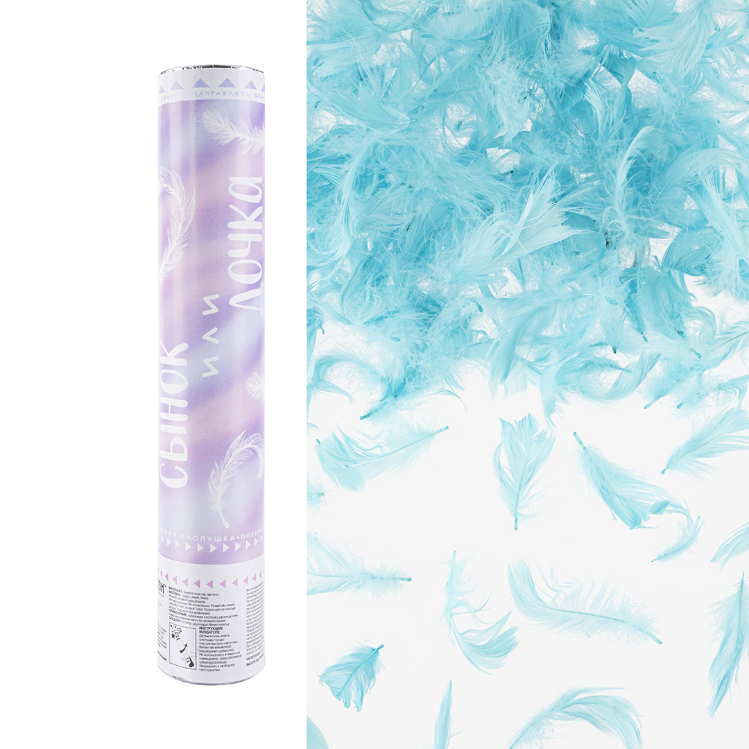 Пневмохлопушка 30см Гендер Пати перья голубой