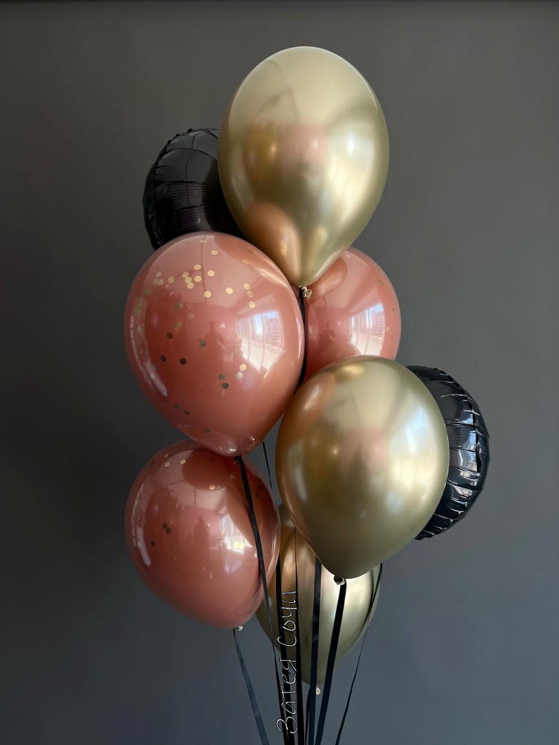 Закажите набор — и подарите себе или близким праздник, который запомнится! Пусть торжество станет таким же ярким, стильным и запоминающимся, как ваш фонтан из персиковых, золотых и чёрных шаров.