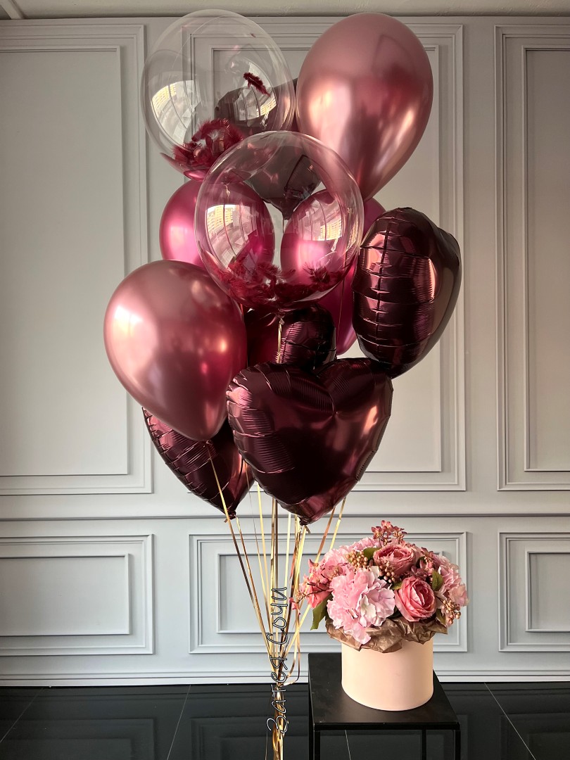 латексные шары в бордовом оттенке;