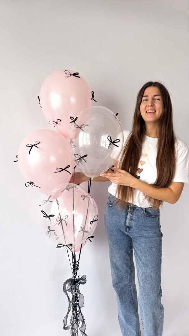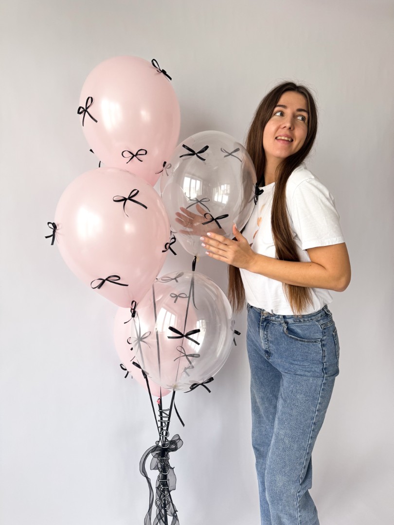 латексные шары с гелием — розовые и прозрачные, лёгкие и воздушные;