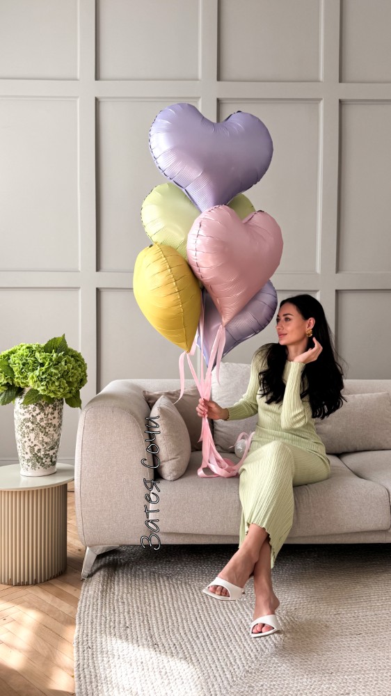 Фонтан из 5 фольгированных шаров в форме сердец — компактная, но эффектная композиция. Каждый шар — отдельное мини‑послание любви и восхищения в нежных весенних оттенках: пастельно‑розовый, мятный, персиковый, лавандовый, светло‑жёлтый. Блестят, порхают и шепчут: «Ты прекрасна!»