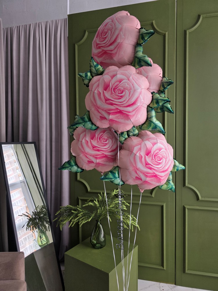 Фонтан из 5 шаров в форме розы акварель — каждая «роза» выполнена с вниманием к деталям: нежные акварельные оттенки и плавные переходы цвета создают эффект настоящих цветов.