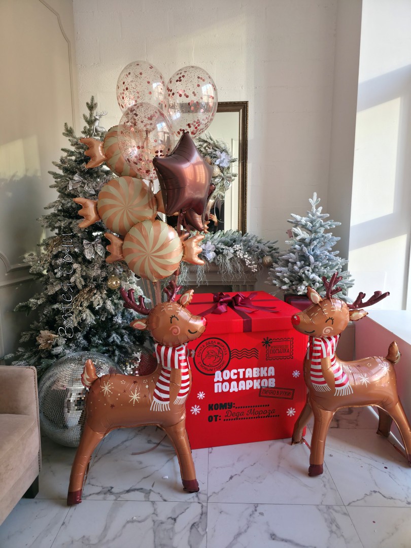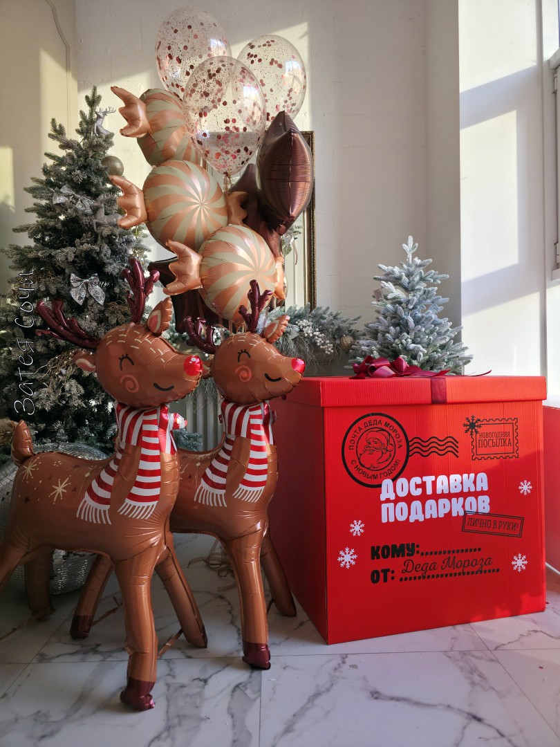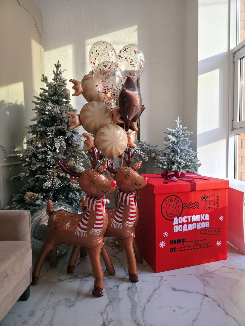 Коробка с шарами «Доставка подарков от Деда Мороза» с гелием: волшебство уже в пути!Хотите увидеть искрящиеся глаза и искренний восторг? Наша коробка превратит обычный день в настоящую зимнюю сказку — будто сам Дед Мороз заглянул на огонёк!