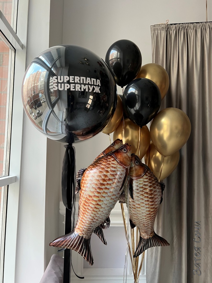 большой шар с надписью «Суперпапа‑супермуж!» — главный трофей праздника;