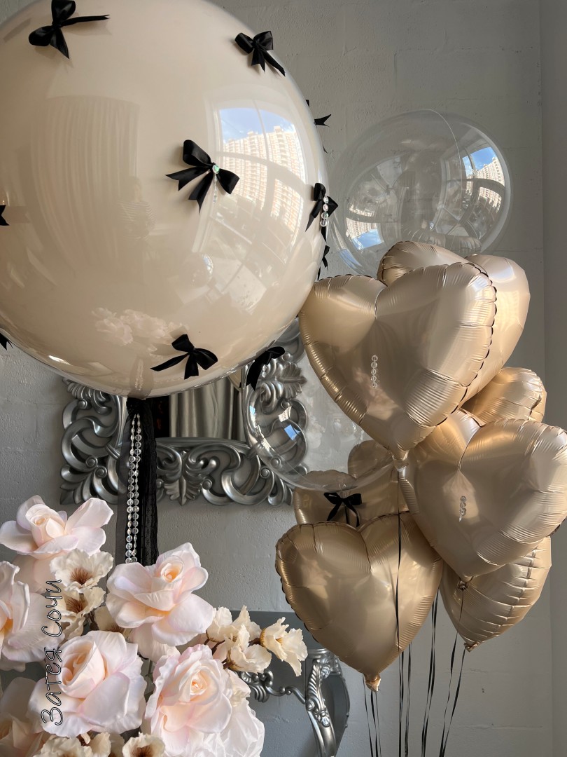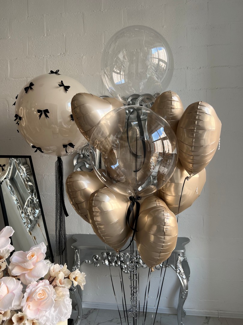 изысканные золотые шары с атласными бантиками — как аксессуар от кутюр;