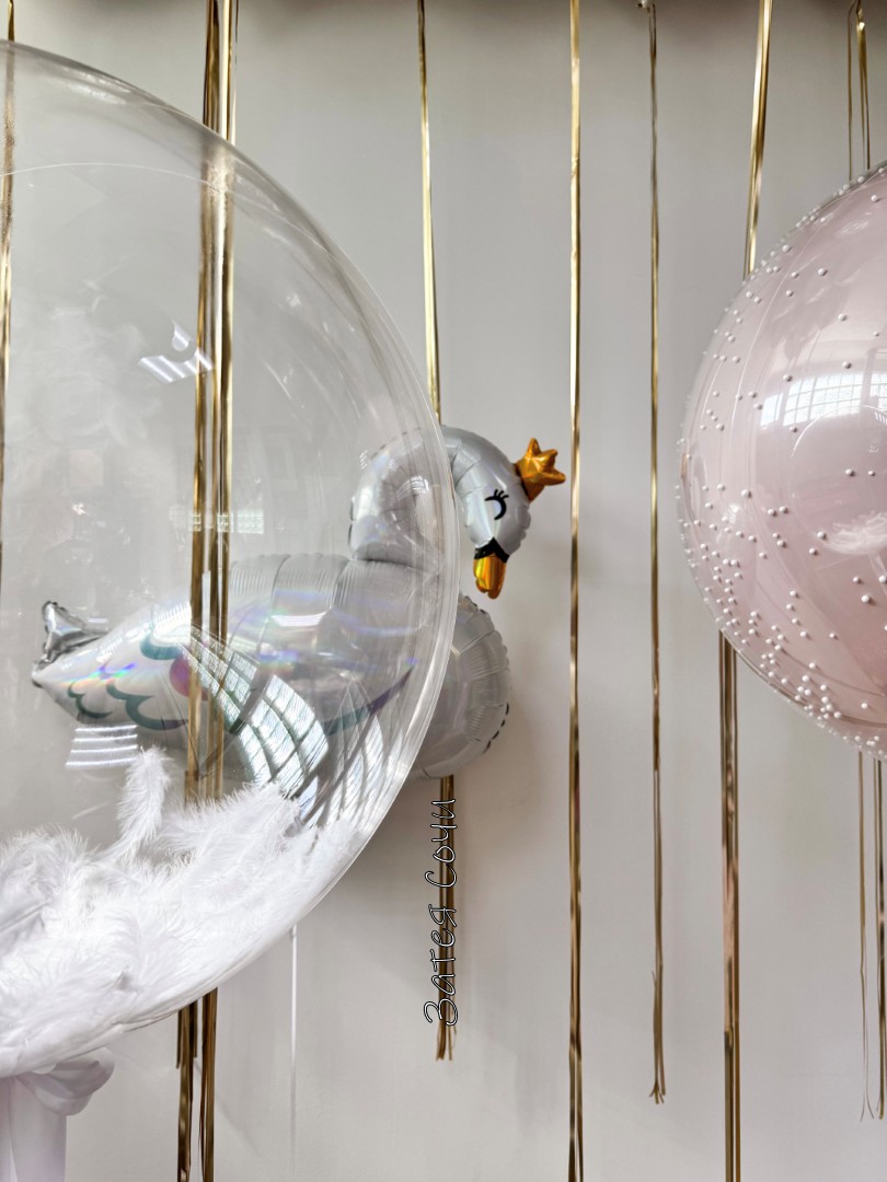 воздушные шары в нежных тонах (белый, айвори, нежно‑розовый) — как ангельские крылышки;