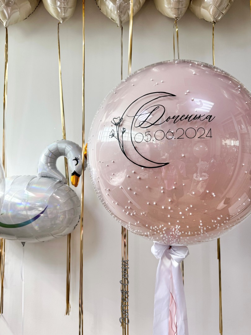 центральный шар с трогательной надписью («Добро пожаловать домой!», «Наш малыш», «Доченька») — душа праздника;
