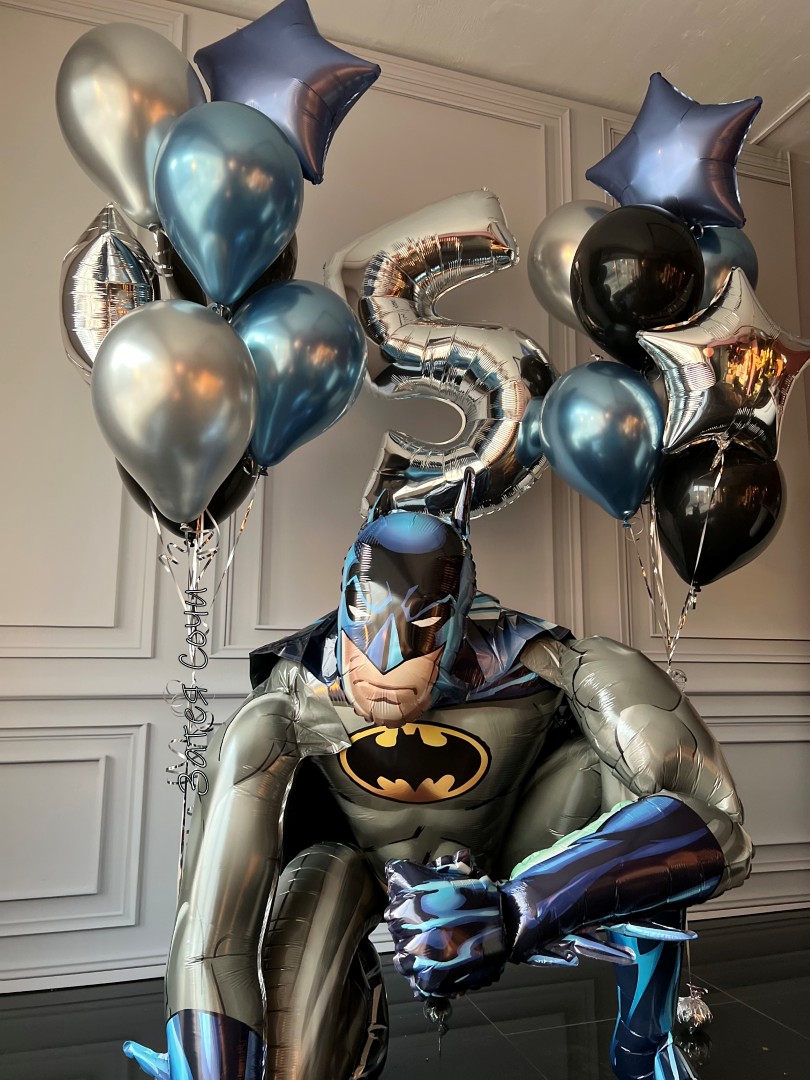 Набор шаров с гелием «Бэтмен» — праздник, где даже воздух в теме!Ваш супергерой готов отмечать — а значит, нужен декор уровня Лиги справедливости! В наборе: два фонтанчика (цвет синий и серебристый, по 8 шаров), шар‑цифра и ходячий шар «Бэтмен» — всё, чтобы вечеринка взлетела (и не только в переносном смысле).