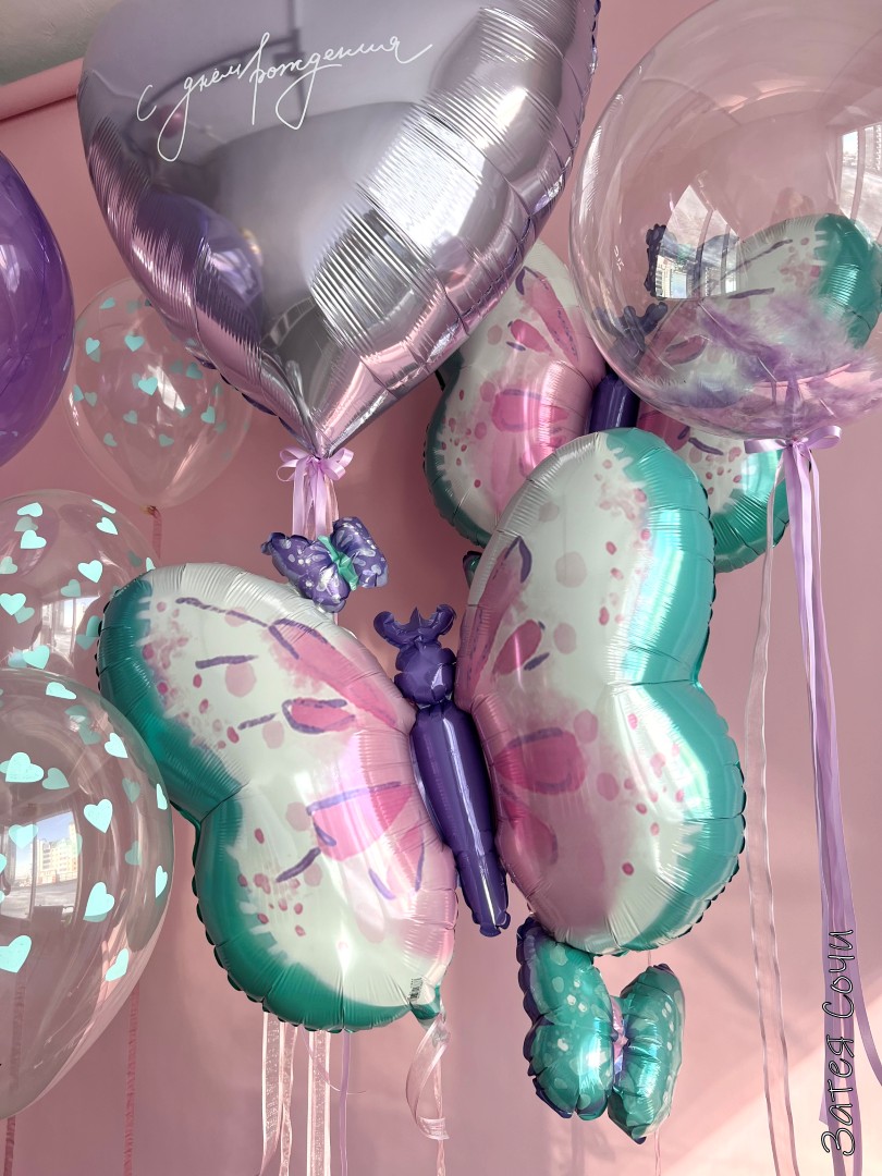 Набор шаров «Бабочки» — сиреневая феерия с крылышками!Хотите, чтобы праздник вспорхнул, как стая бабочек? Наш набор превратит любое торжество в воздушную сказку! Сиреневые шары дарят нежность, прозрачные — лёгкость, а фигурки бабочек порхают, будто живые. Большой шар с вашей надписью скажет всё без слов, а гелиевые шары создадут праздничное облако радости.