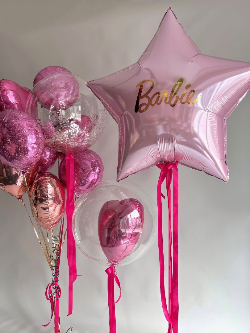 Набор шаров «Барби» — праздник в розовом королевстве!Мечтаете о сказочном торжестве? Наш набор превратит любой день в настоящую сказку Барби! Нежно‑розовые оттенки дарят настроение волшебства, фонтан из шаров создаёт праздничное облако, прозрачные шары с сердечками внутри порхают, как мечты, а большая звезда с вашей надписью станет сияющим финалом композиции.
