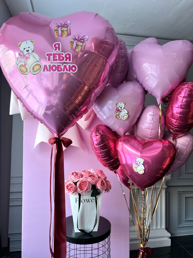 Набор шаров «Я тебя люблю» — признание в нежно‑розовых тонах!Хотите сказать «люблю» так, чтобы сердце растаяло? Наш набор превратит ваше признание в воздушное шоу! Мягкие розовые оттенки дарят ощущение тепла, фонтан из сердец кружится в романтическом танце, а большое сердце с вашей надписью шепчет самые важные слова — без лишних слов.
