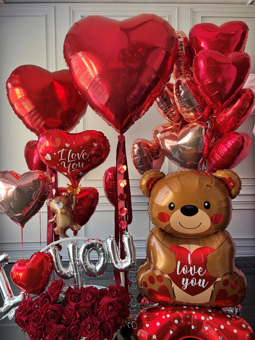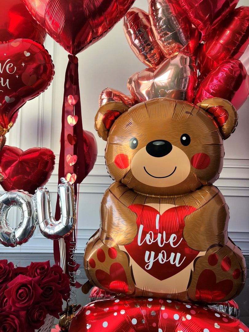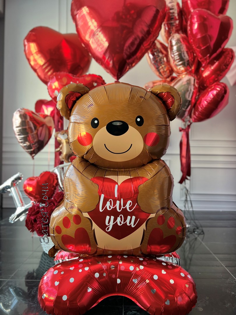 Набор шаров «Люблю, мишка» — порция романтики в ярко‑красном стиле!Сердце стучит «люблю‑люблю»? Пора сказать это красиво! Наш набор превратит признание в красочное шоу: пылающий красный задаёт страстный тон, фонтан сердец кружится в танце, большое красное сердце бьёт в унисон с вашим, милый мишка добавляет уюта, а надпись I love you шепчет то, для чего не нужны переводы.