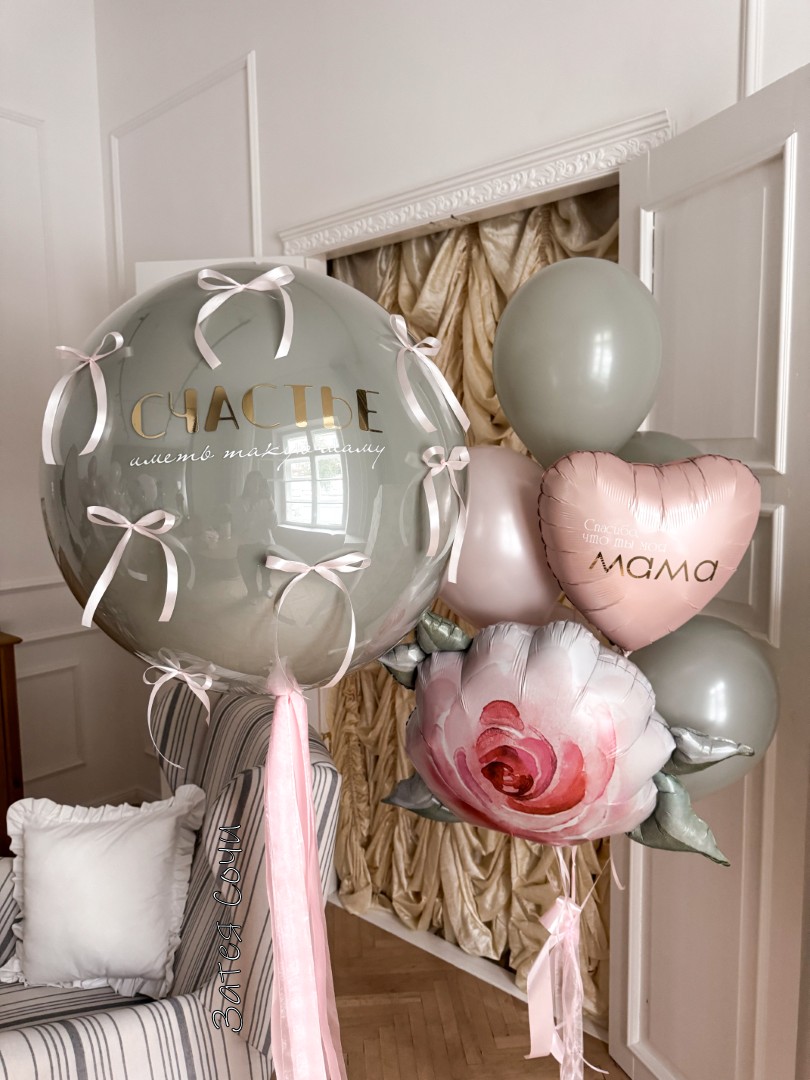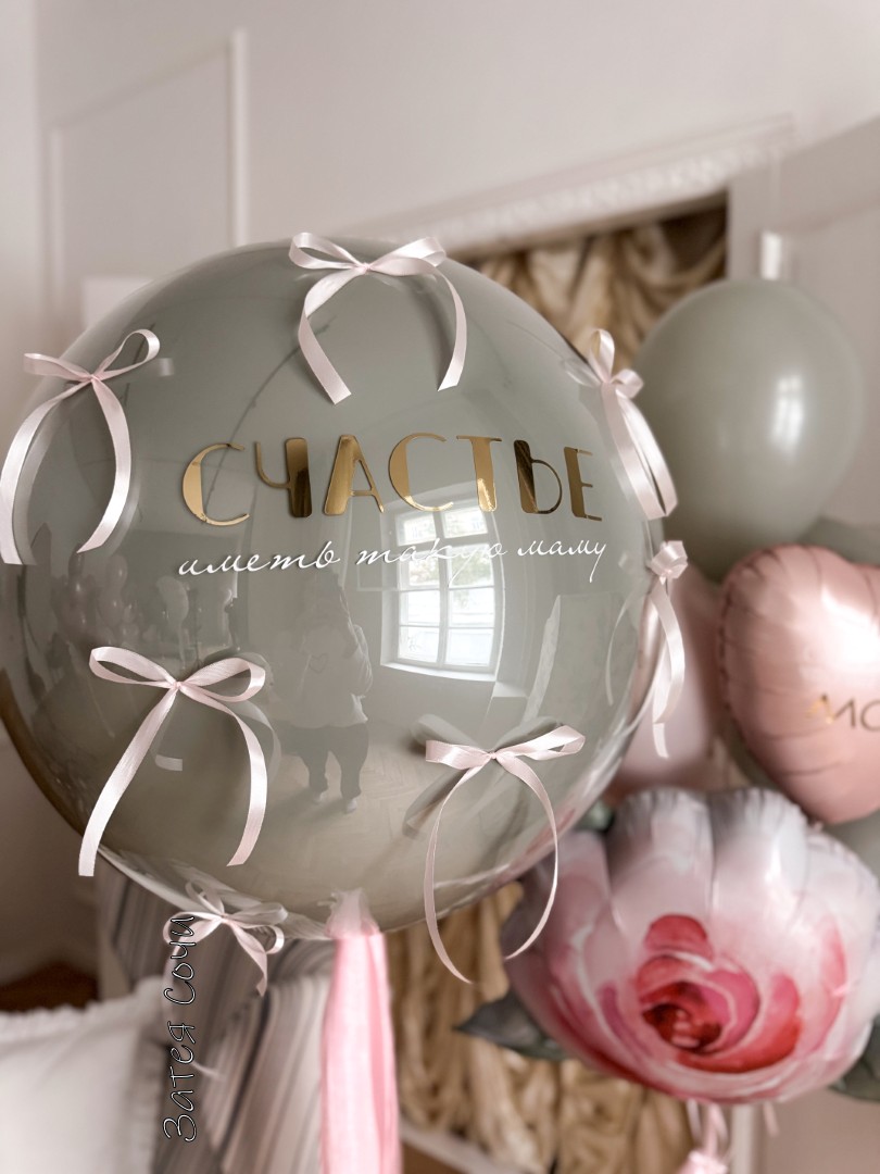 величественный большой шар с персональной надписью «Счастье иметь такую Маму»;
