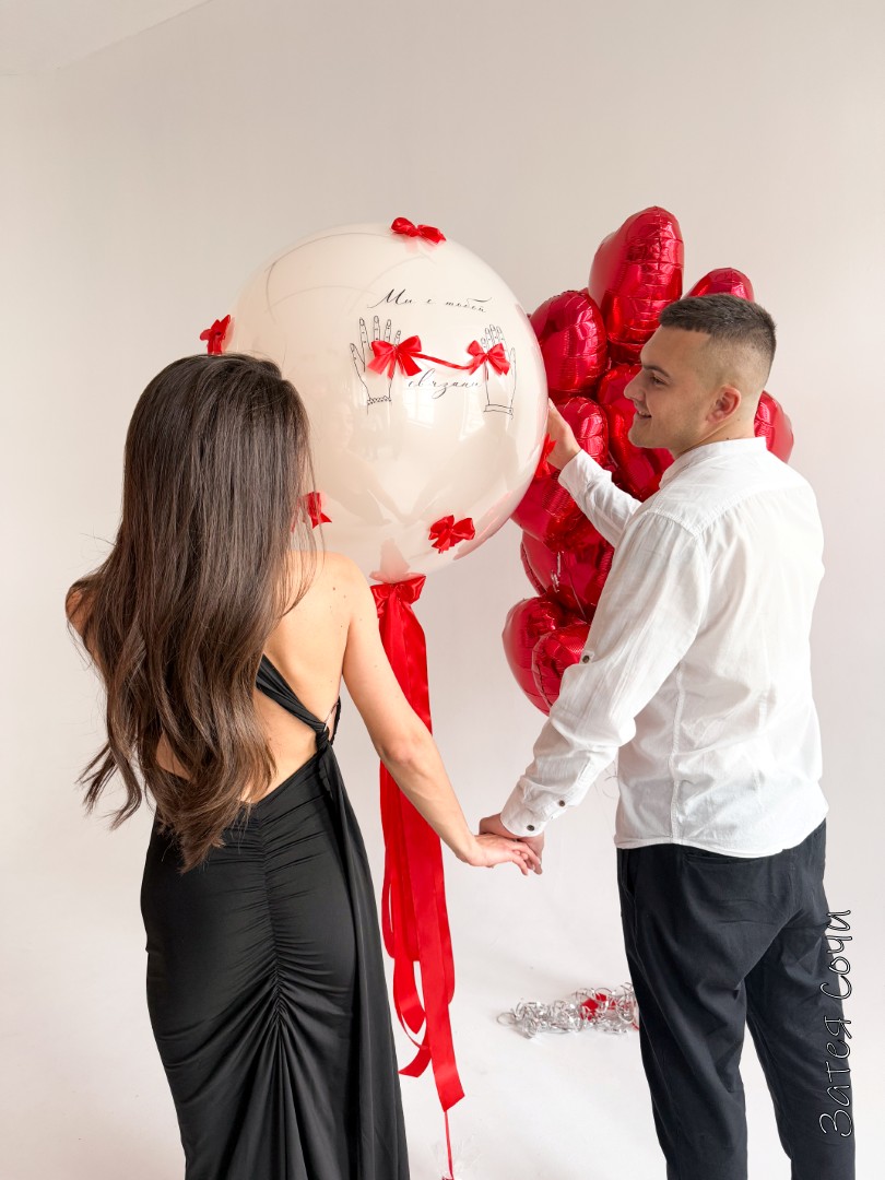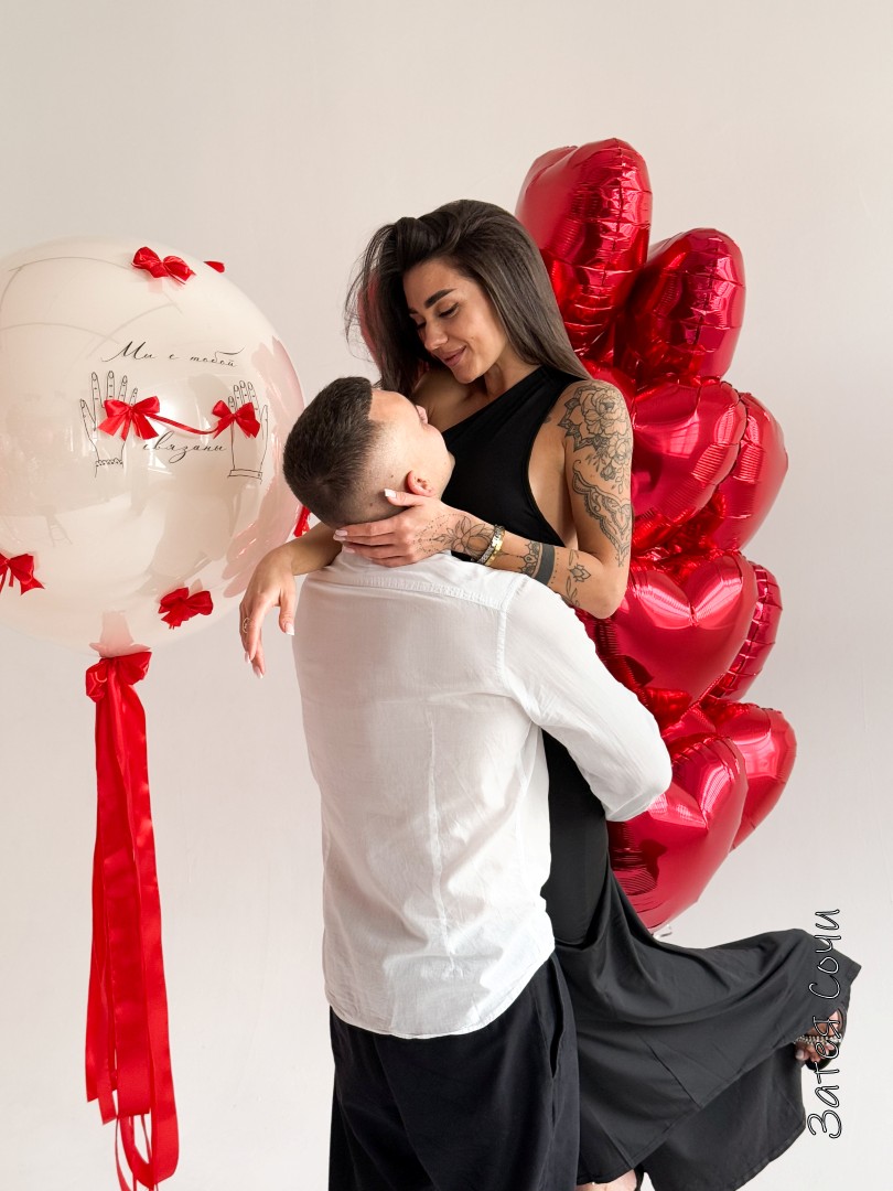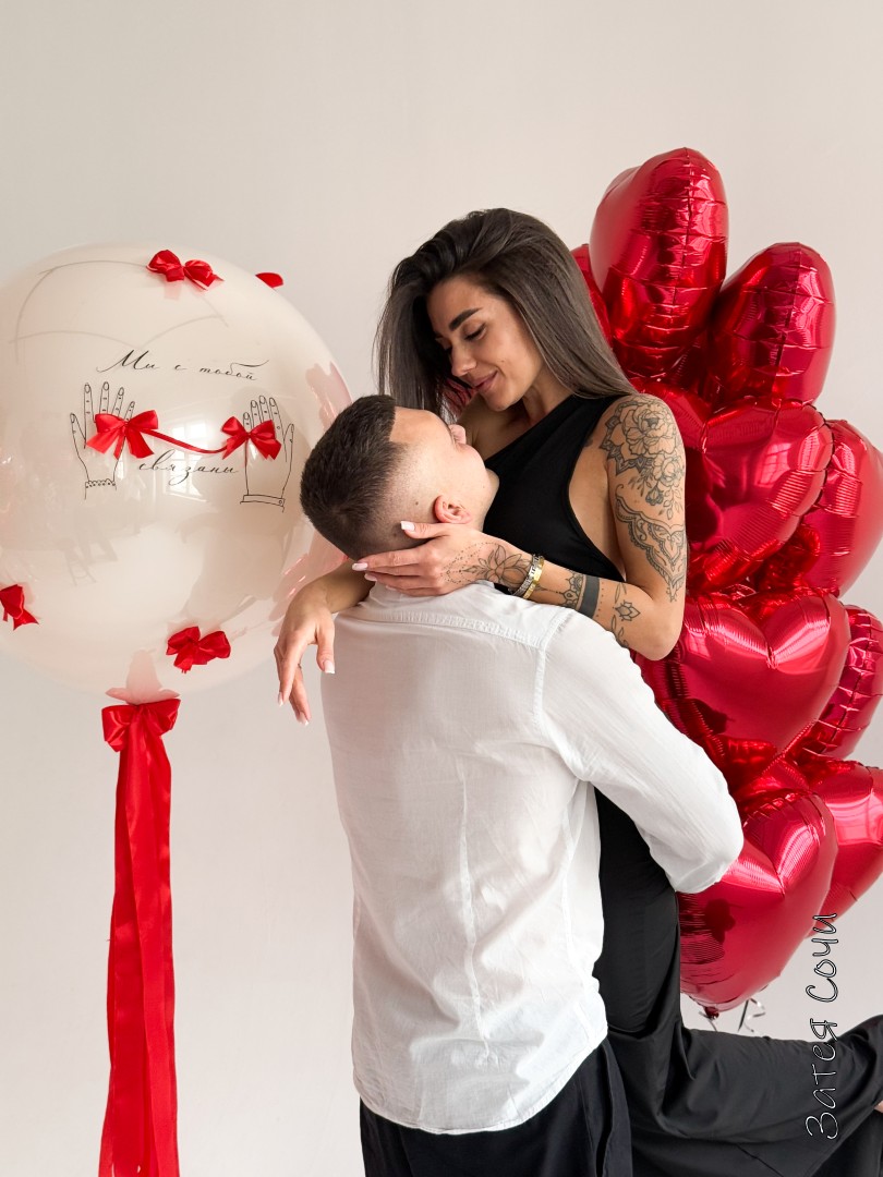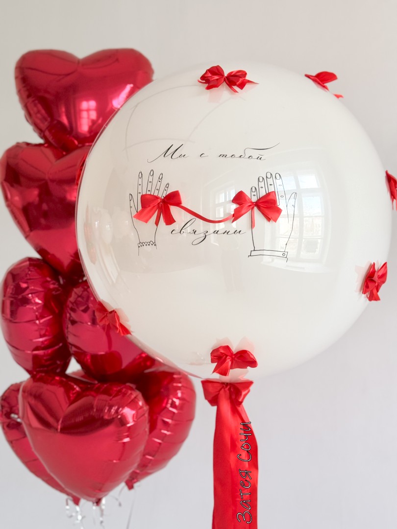 величественный большой шар с персональной надписью «Мы с тобой связаны» — ваши чувства буквально на высоте;