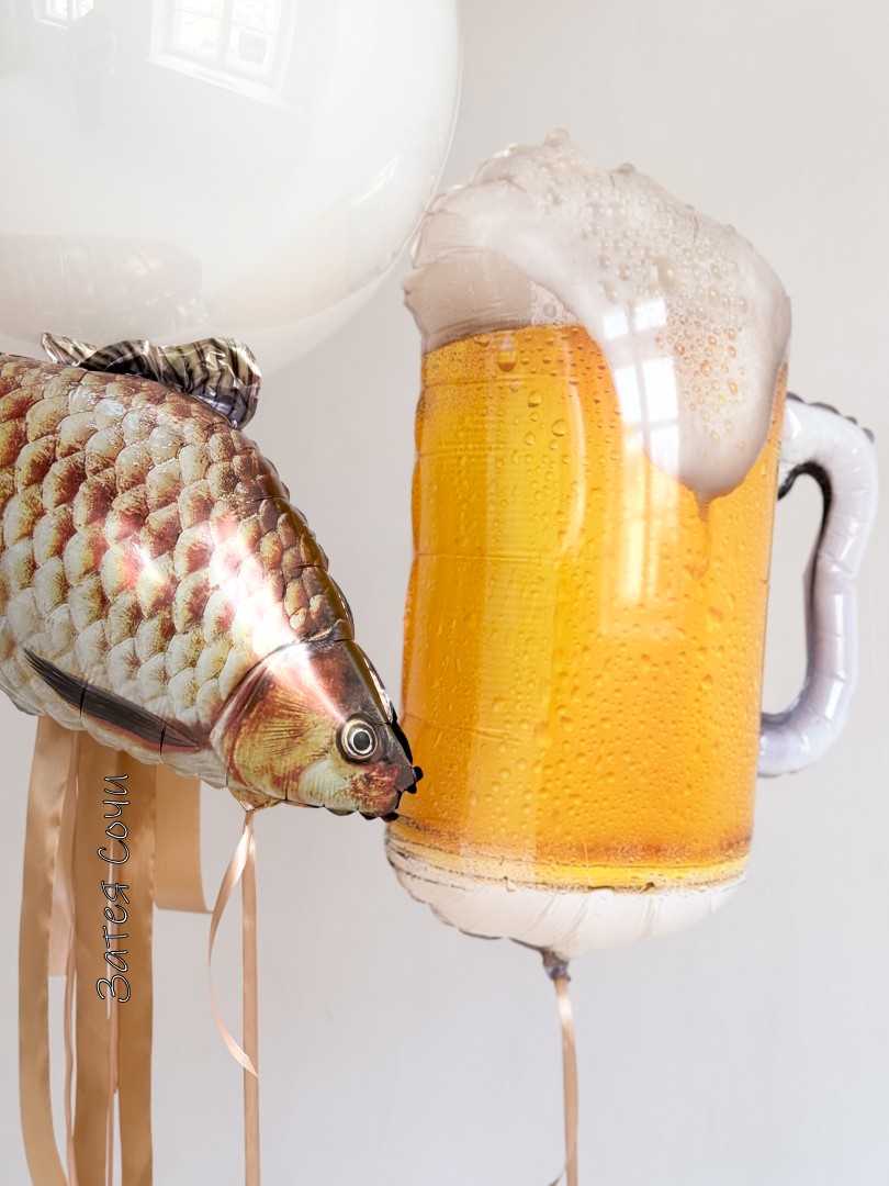 шары в форме аппетитной рыбки и кружки пенного пива;