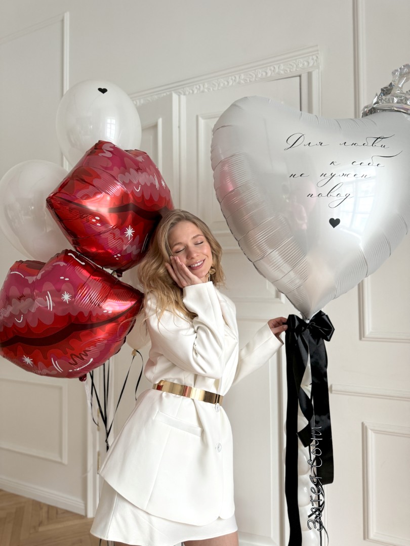 шары в форме красных губ — игривый акцент и намёк на праздник;