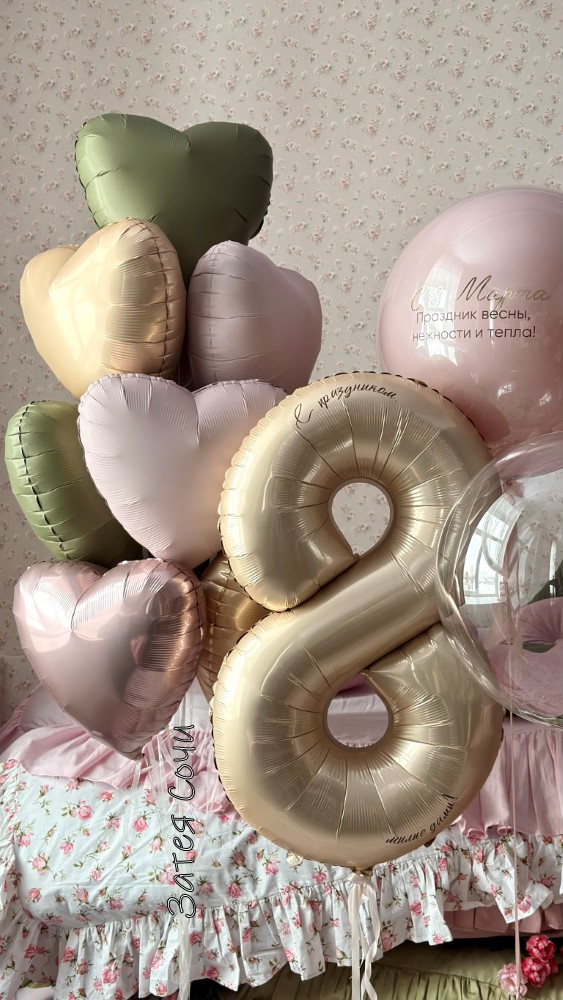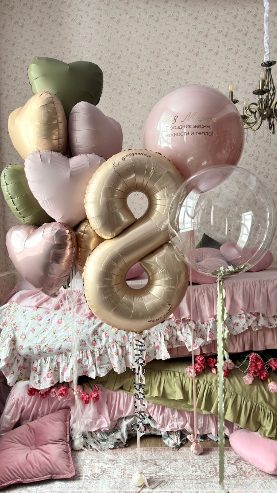 Набор шаров с гелием на 8 Марта: праздник весны, нежности и… полёта!Хотите, чтобы 8 Марта запомнилось надолго? Не просто «спасибо за подарок», а искреннее «вау, это так красиво!»? Представляем идеальный набор воздушных шаров — он добавит празднику лёгкости, нежности и немного волшебства (ну и гелия, куда без него).