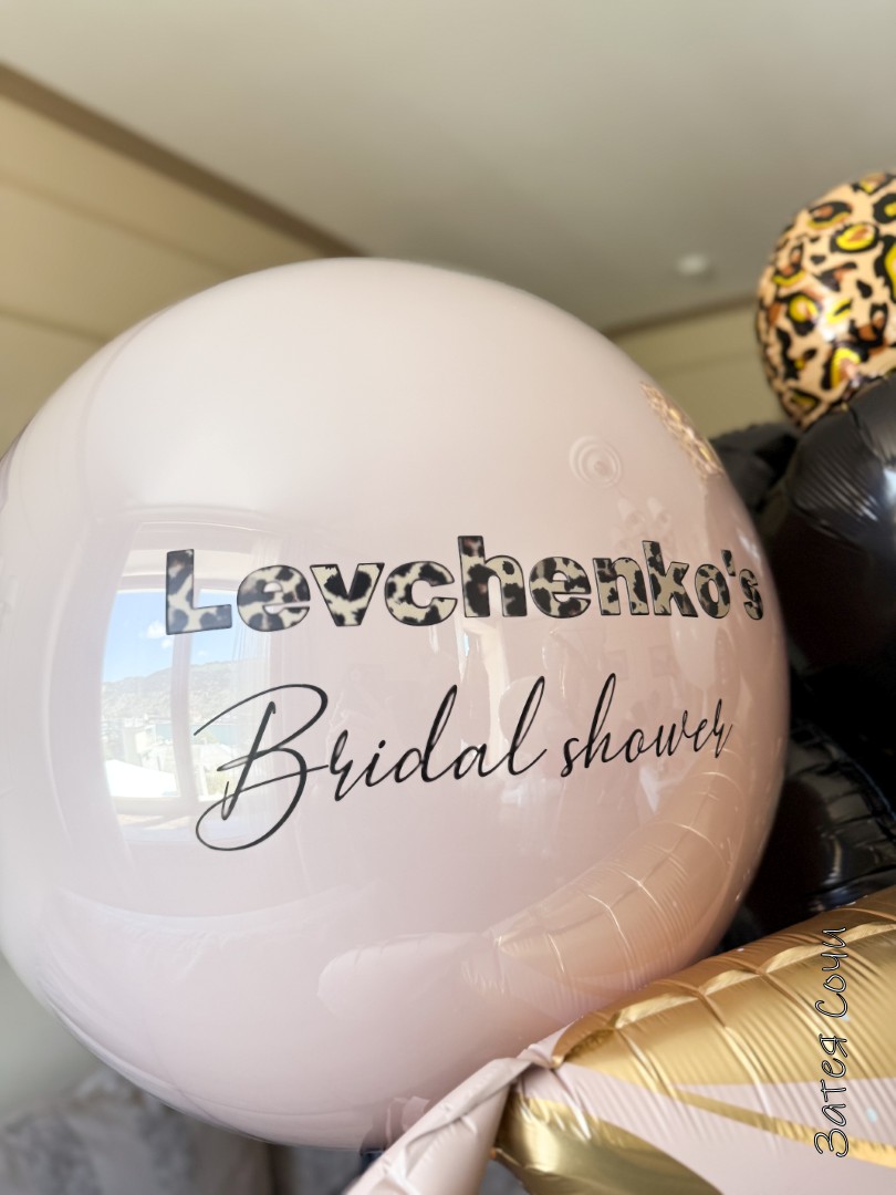 Большой шар с надписью «Levchenko’s Bridal Shower» — стильный акцент для вашего девичника и магнит для фото!Готовьтесь к вечеринке, которая войдёт в историю! Наш эффектный шар с персональной надписью превратит девичник в модное событие и станет главным героем праздничных кадров.