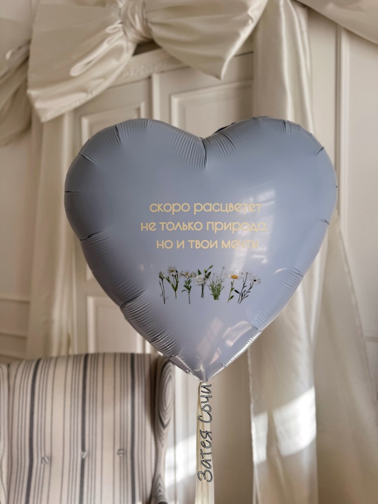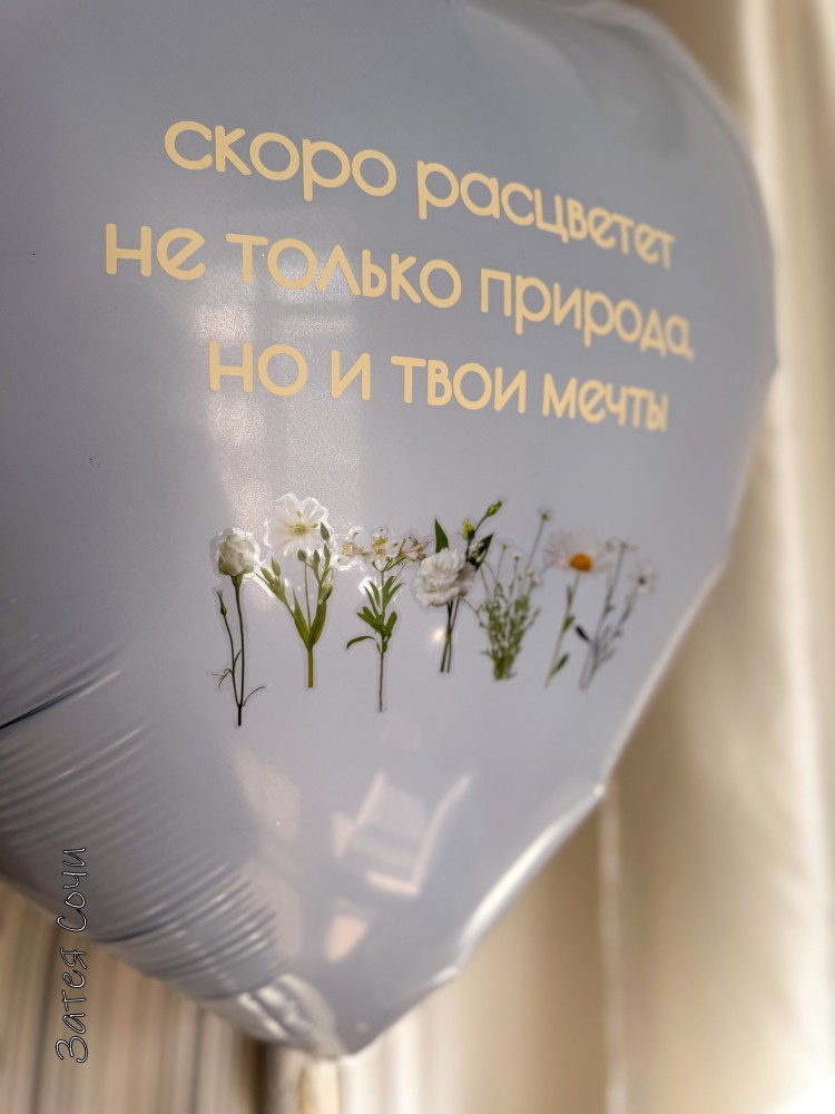 Шар «Твои мечты» — воздушный талисман для исполнения желаний!Весна — время, когда природа просыпается, а мечты начинают шептать: «Пора сбываться!» Помогите им в этом с помощью волшебного помощника — большого шара с гелием в форме сердца голубого цвета и вдохновляющей надписью: «Скоро расцветёт не только природа, но и твои мечты».