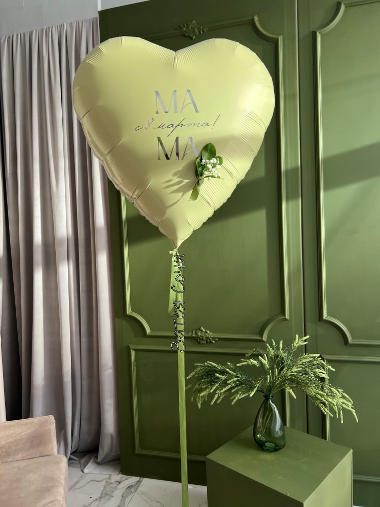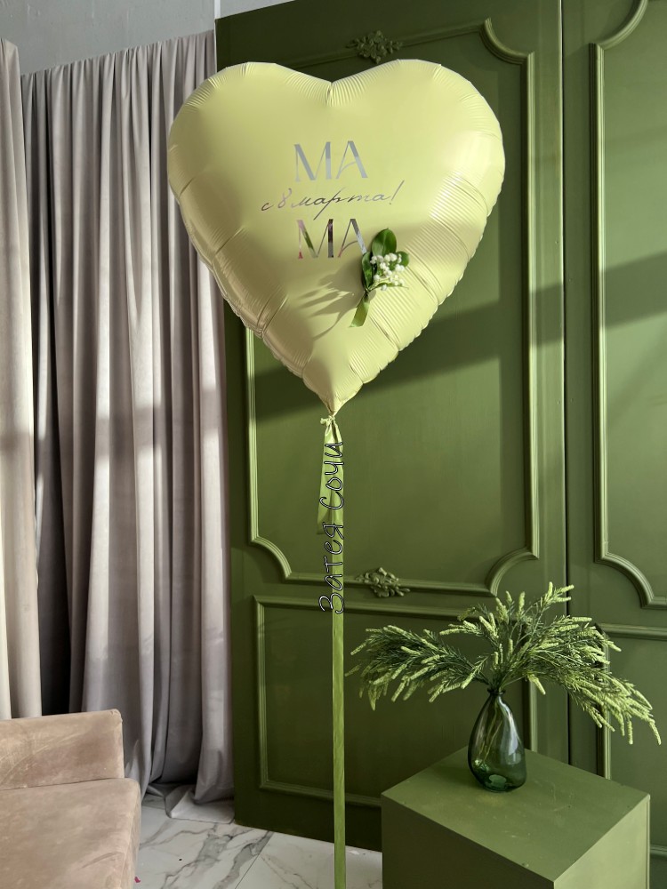 Большой шар в форме сердца ванильного цвета — тёплый, уютный и такой же душевный, как мамины объятия. Оттенок напоминает ванильный крем в любимом торте: сразу становится теплее на душе и хочется улыбнуться.