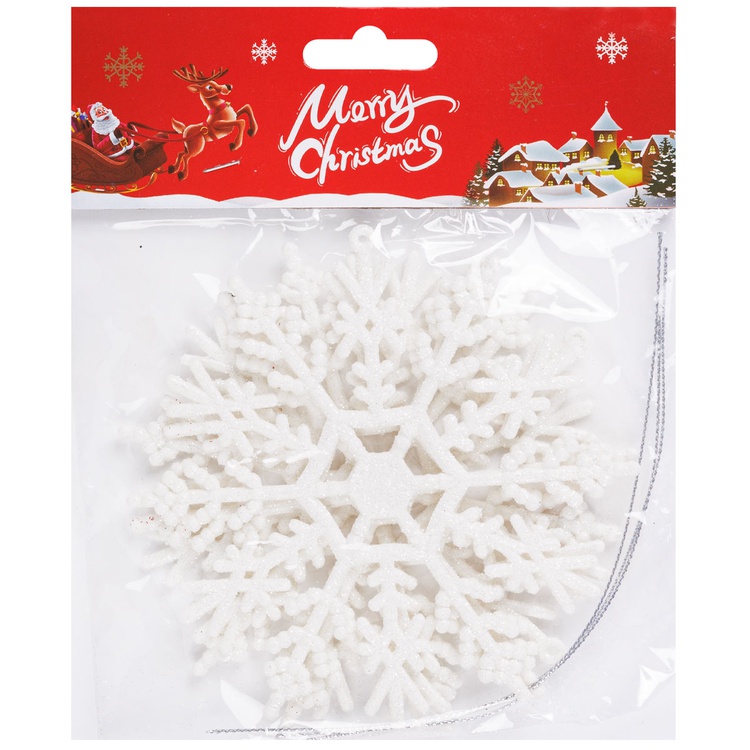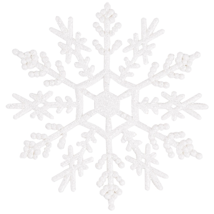 Снежинка белая глиттер пластик 12см 3шт
