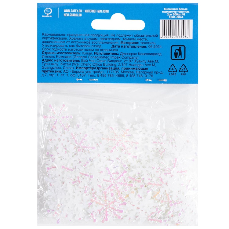 Снежинки белые перламутр 2см 300шт