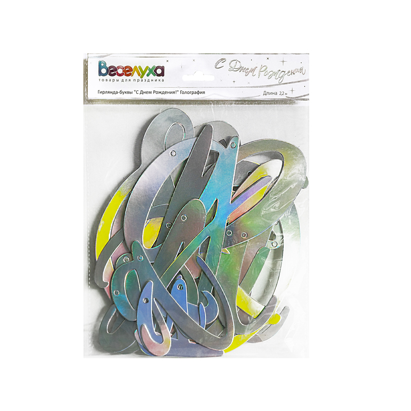 Гирлянда-буквы С Днем Рождения! голография 220см