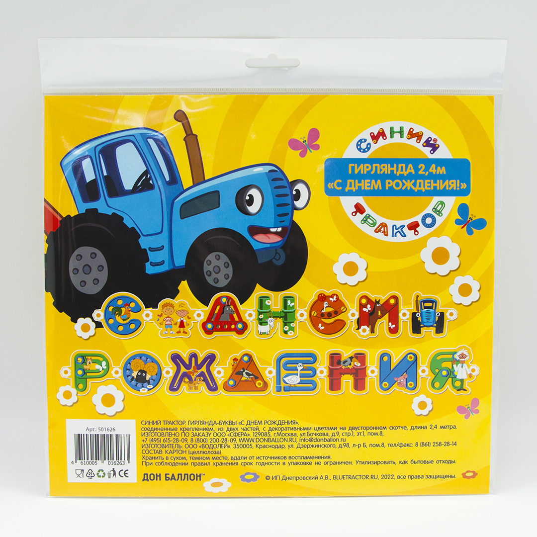Гирлянда Синий трактор С Днем Рождения! 250см