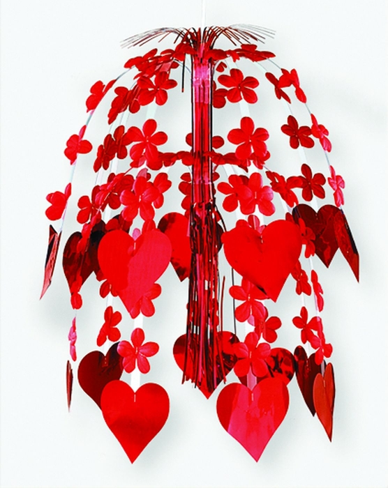 Каскад подвесн Сердца Цветы красн 61 см/A