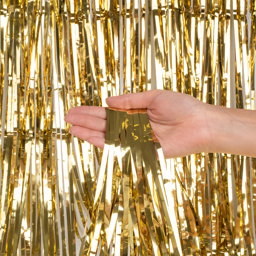 Декоративное украшение из металлизированной полимерной пленки. Идеально подойдет и для праздничного оформления интерьера, и для декорирования латексных и фольгированных шаров.Примечание: размещенный на верхней части занавеса-гирлянды двусторонний скотч поможет максимально быстро и оперативно закрепить дождик при монтаже декора.