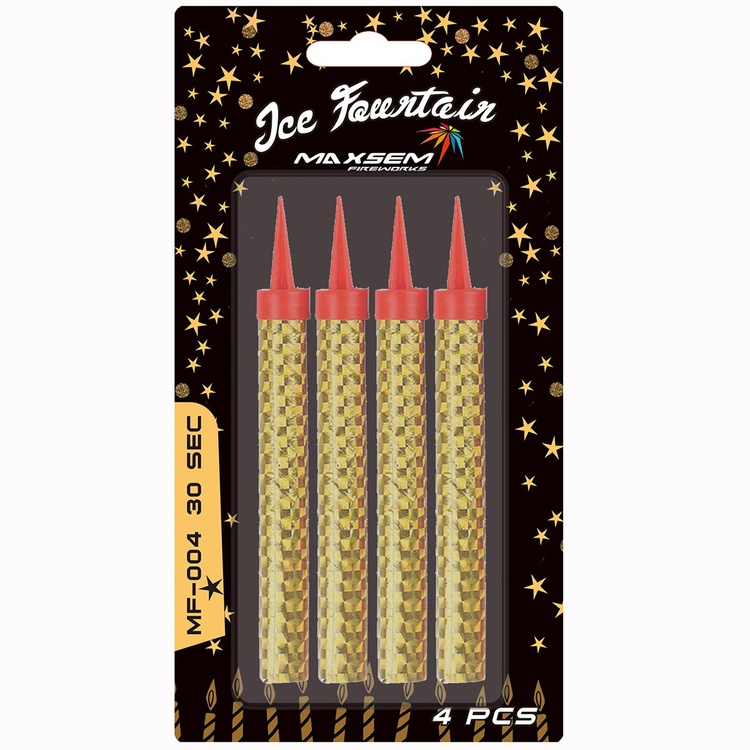 Легко устанавливается и поджигается. В упаковке 4 свечи-фонтана, высота каждой 10 см.