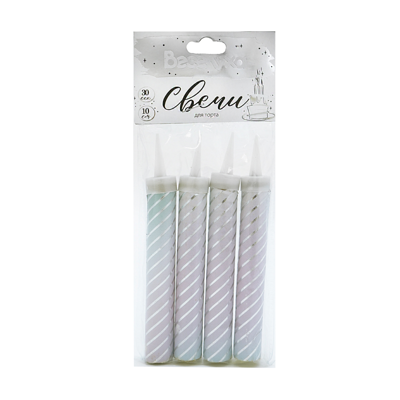 Свеча-фонтан для торта серебро макарунс 10см 4шт