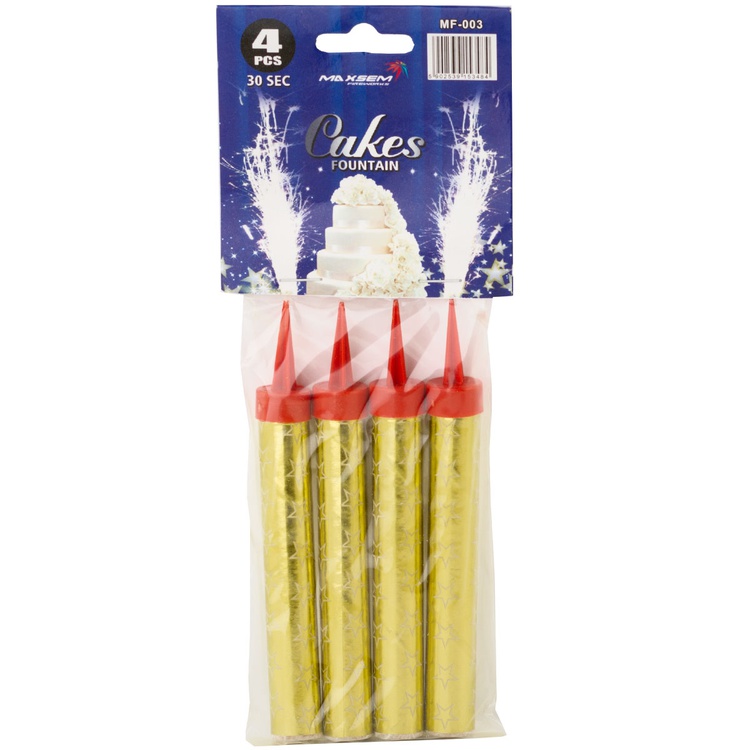 Легко устанавливается и поджигается. В упаковке 4 свечи-фонтана, высота каждой 10 см.