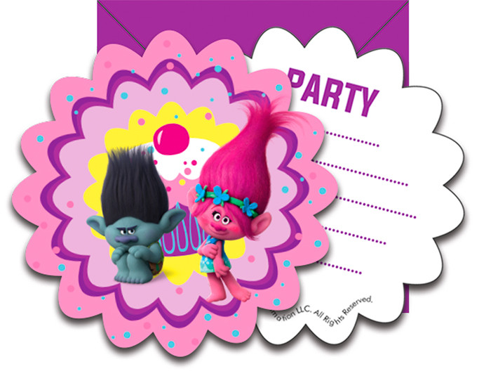 Пригласительные на детский день рождения Тролли 6шт