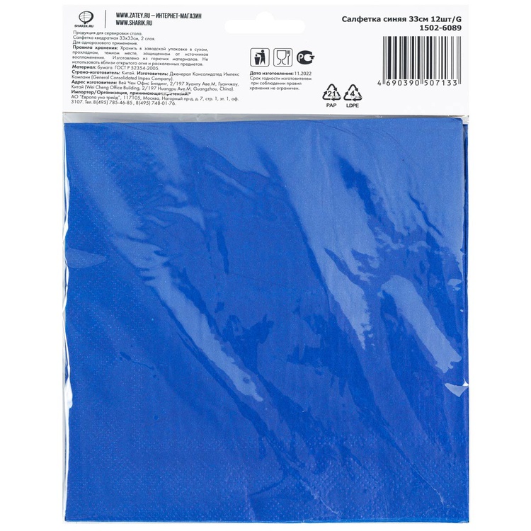 Салфетка синяя 33см 12шт