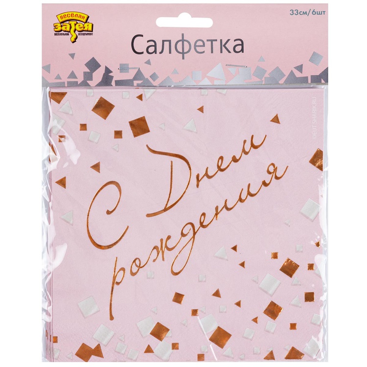 Салфетка С ДР Конфетти Party розовый 33см 6шт