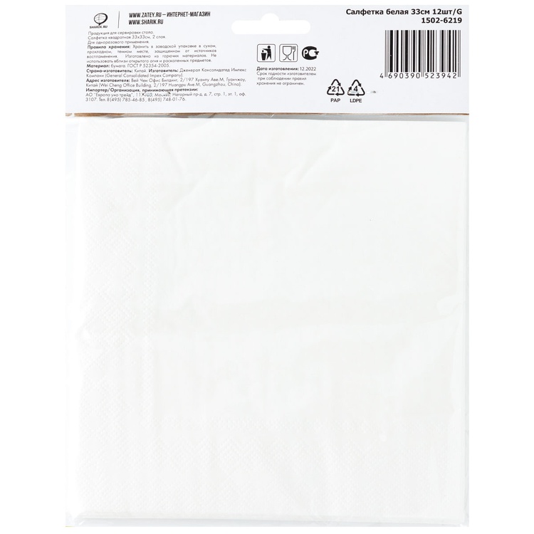Салфетка белая 33см 12шт