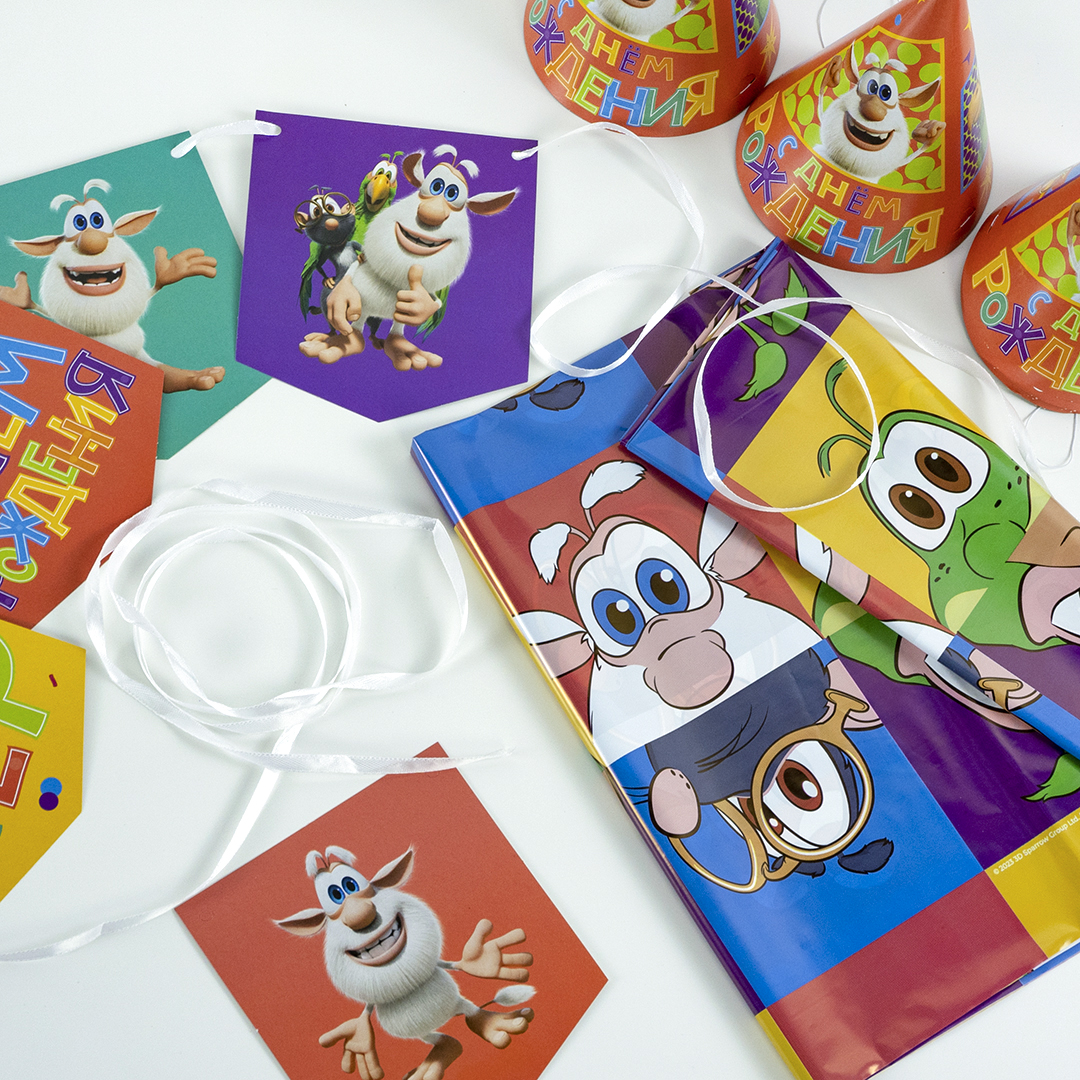 Используя в оформлении товары с героями мультфильма «Буба», Вы сможете оформить знаменательное событие в тематическом стиле любимого мультфильма.