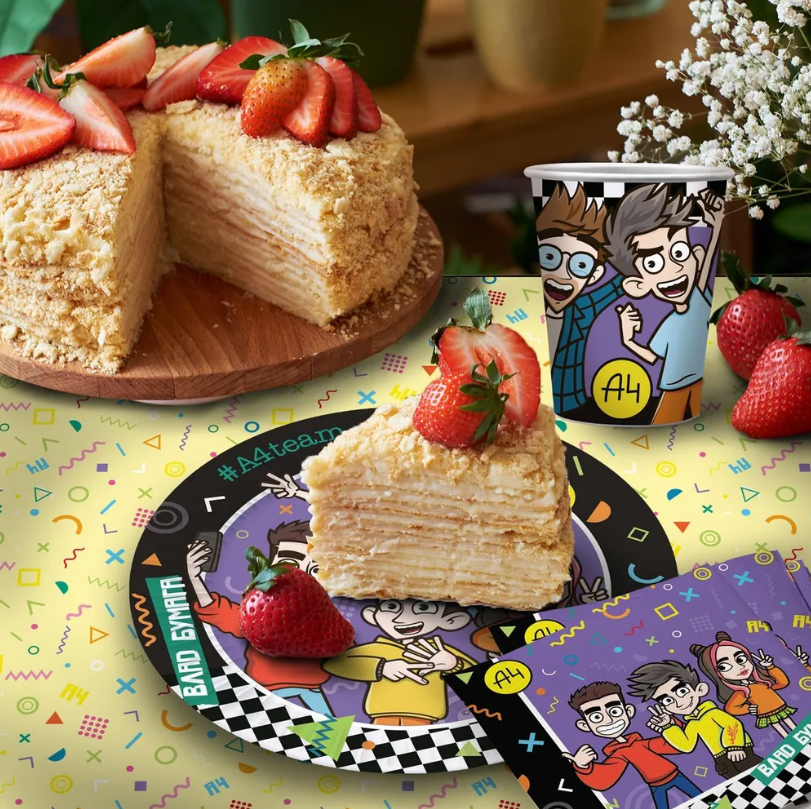 Стильная одноразовая скатерть «Влад А4» мгновенно преобразит ваш пикник, праздник и посиделки с друзьями на даче. Скатерть размером 120х180 см изготовлена из тонкого полиэтилена и украшена ярким печатным рисунком анимированного Влада А4. Благодаря мягкому материалу к скатерти приятно прикасаться, а глянцевый блеск ткани будет радовать вас в любую погоду.Полиэтиленовая скатерть не пропускает воду, поэтому не бойтесь замочить ее дождем или сладким напитком – такая скатерть быстро очищается с помощью губки или тряпочки.