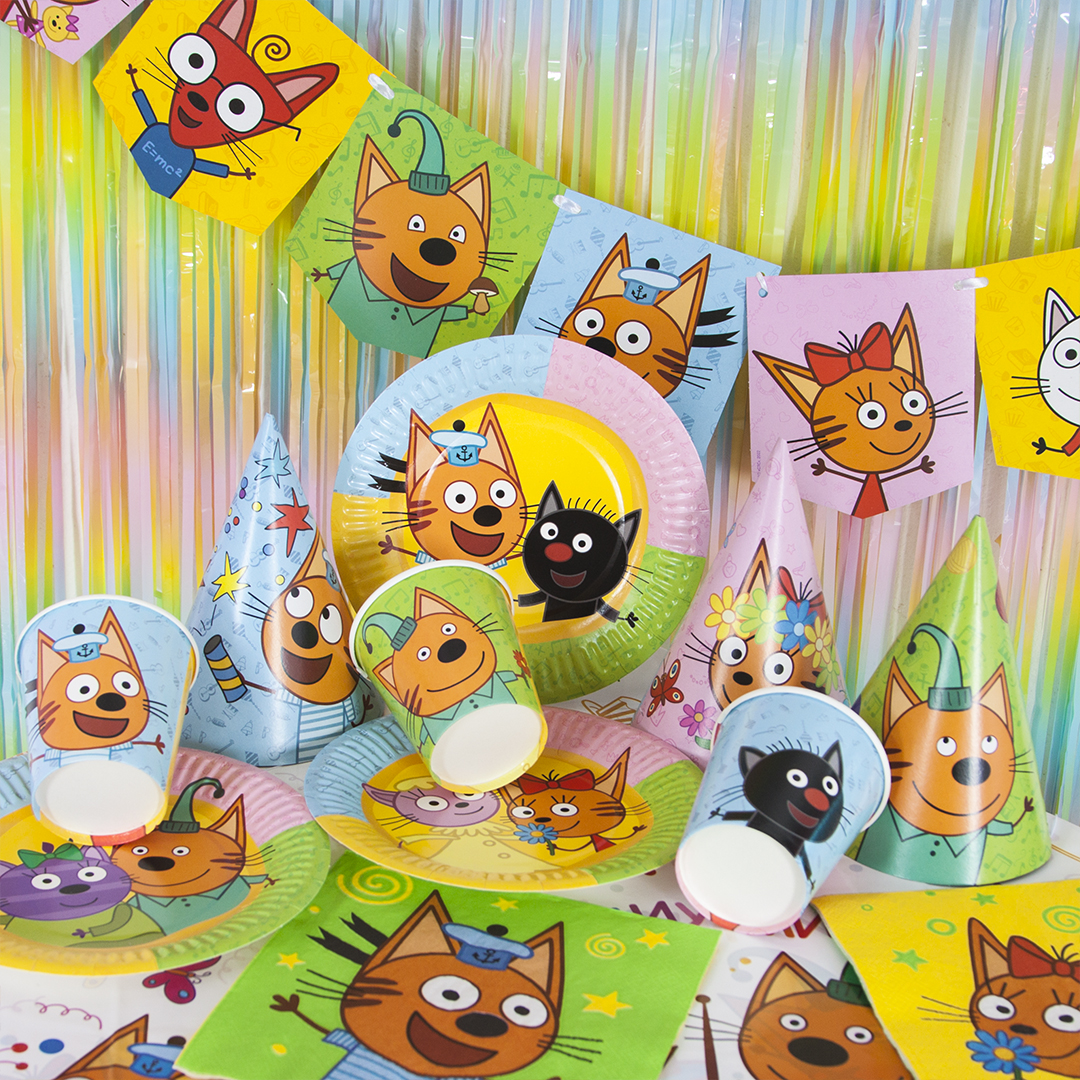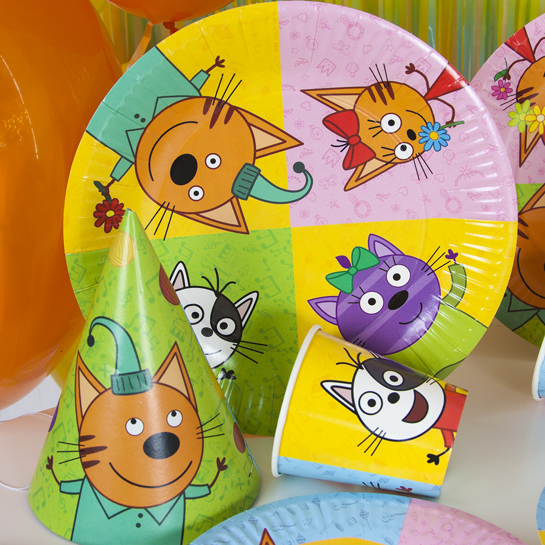 Красочная одноразовая посуда с любимыми персонажами мультфильма "Три Кота" станет дополнительным украшением праздника, а также поможет минимизировать время организации торжества.Оригинально подобранный дизайн будет прекрасным атрибутом и для пикника на природе, и для любого события с близкими людьми и друзьями.