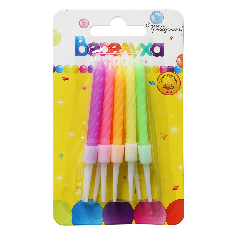 Свечи д/торта Ассорти мини Неон 6см 10шт