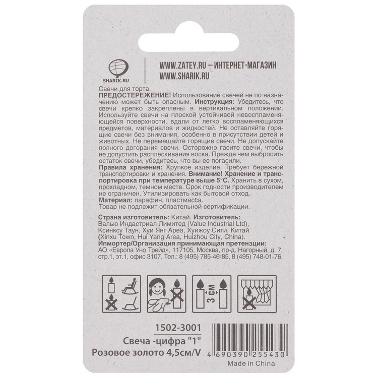 Свеча-цифра 1 розовое золото от Весёлая затея - это стильное и качественное украшение для вашего праздника. Она поможет создать атмосферу радости и веселья, а также станет отличным напоминанием о знаменательном событии.