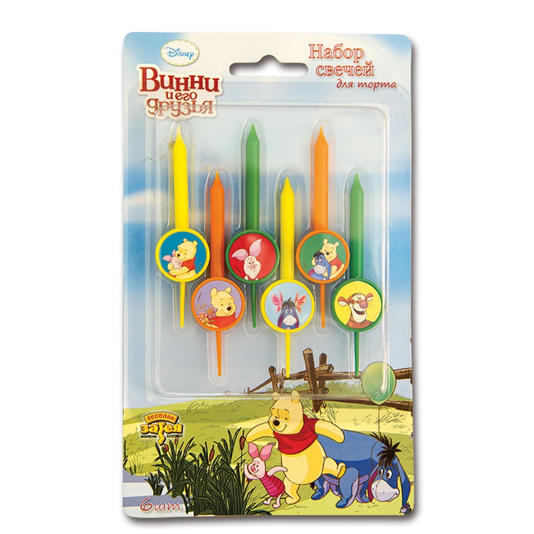 Свечи для торта Disney Винни и друзья от Весёлая затея – это яркие и красочные украшения, которые сделают ваш праздник незабываемым.Свечи выполнены в разноцветных тонах, что придает им особую яркость и красочность. В комплекте вы найдете 6 свечей с подставками, каждая из которых украшена медальоном с изображением персонажей из мультфильма "Винни Пух". Это делает свечи не только красивым, но и тематическим украшением.