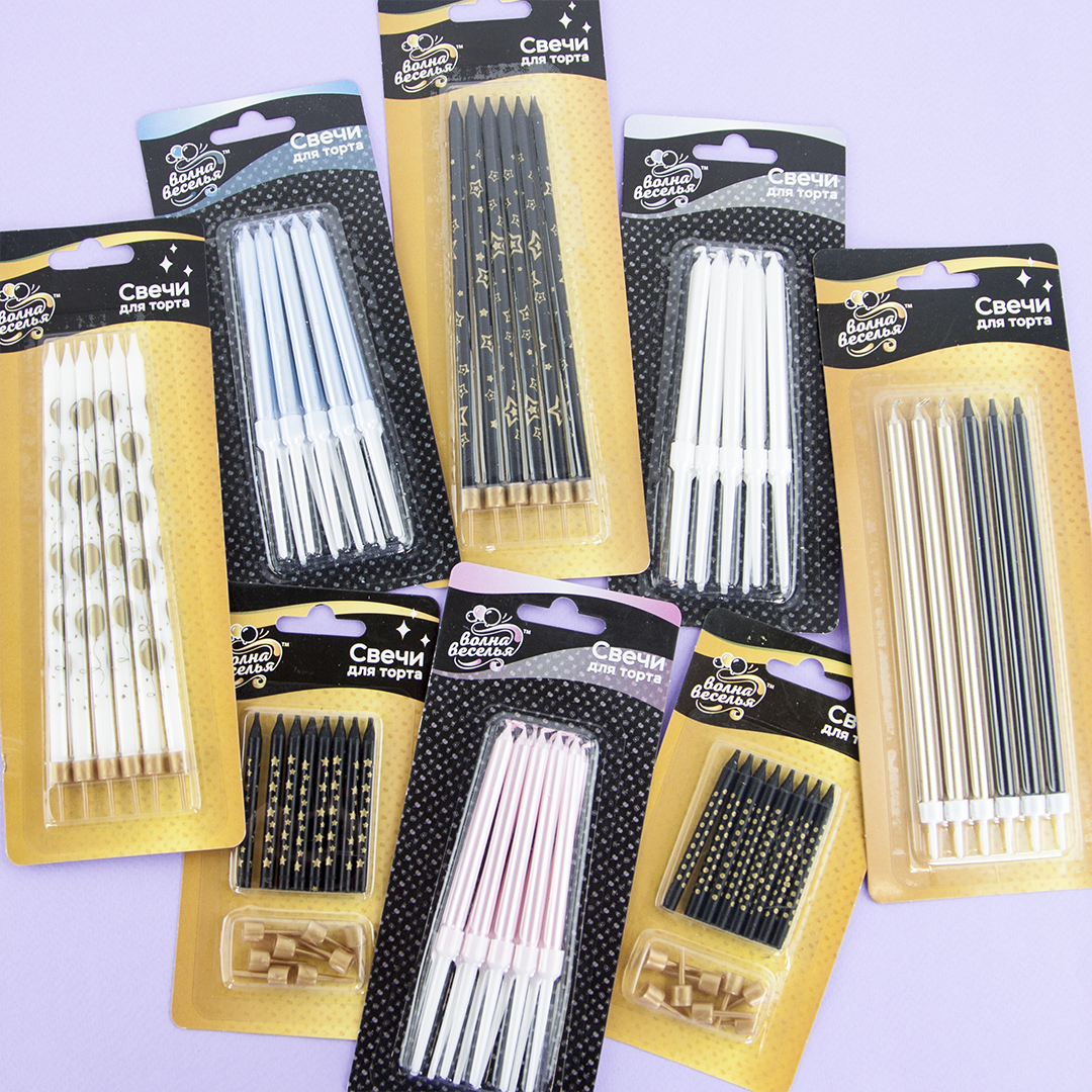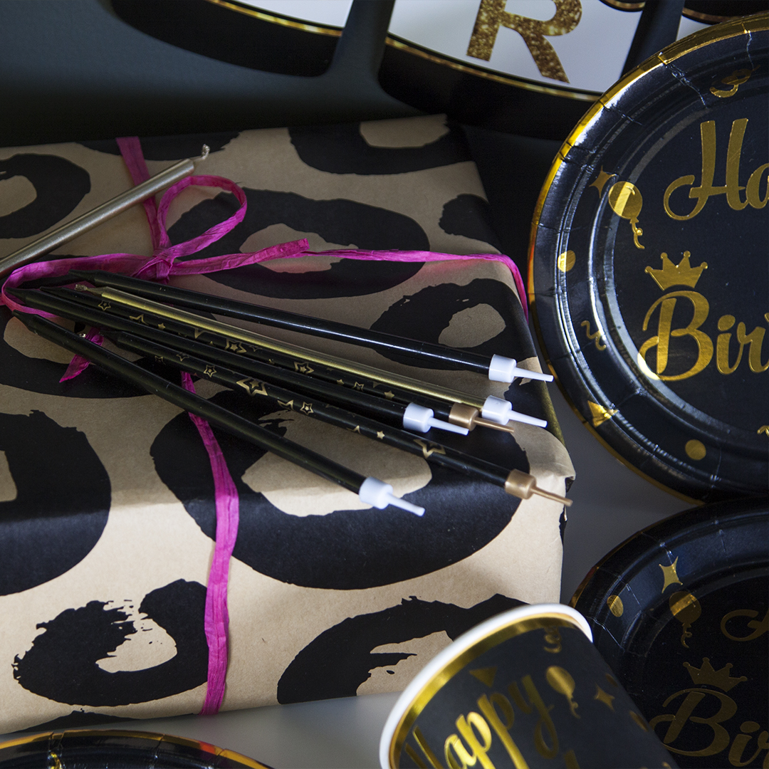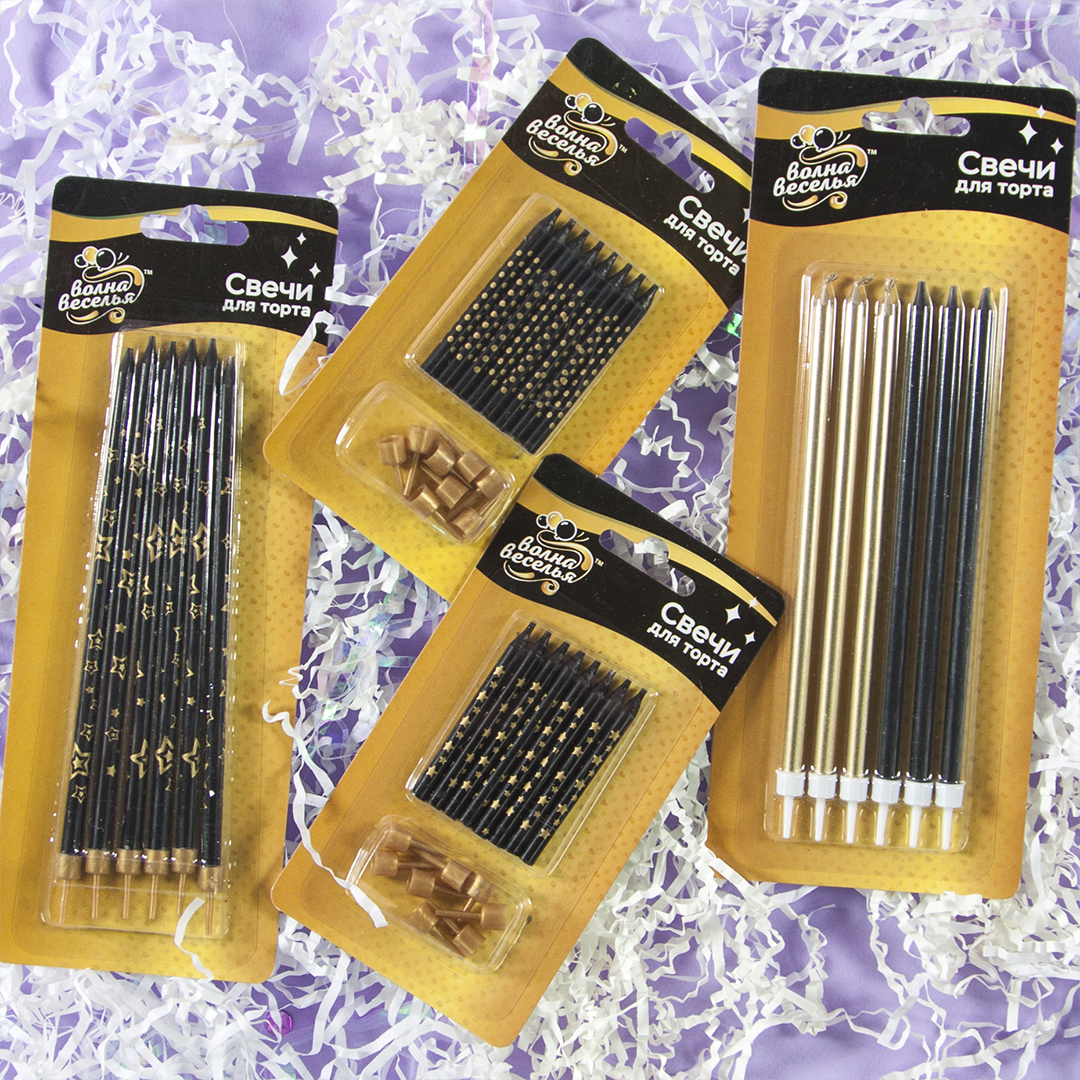 Свечи для торта черный/золото 14,5см 6шт