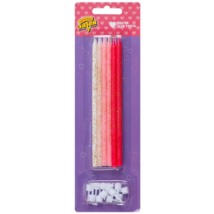Свечи для торта "Весёлая затея" представляют собой декоративное украшение праздничного стола, которое станет ярким акцентом на вашем торжестве.Свечи выполнены в четырех цветах: белом и трех оттенках розового. Это позволяет создать уникальный и неповторимый дизайн торта, который будет радовать глаз и вызывать улыбку на лицах гостей.