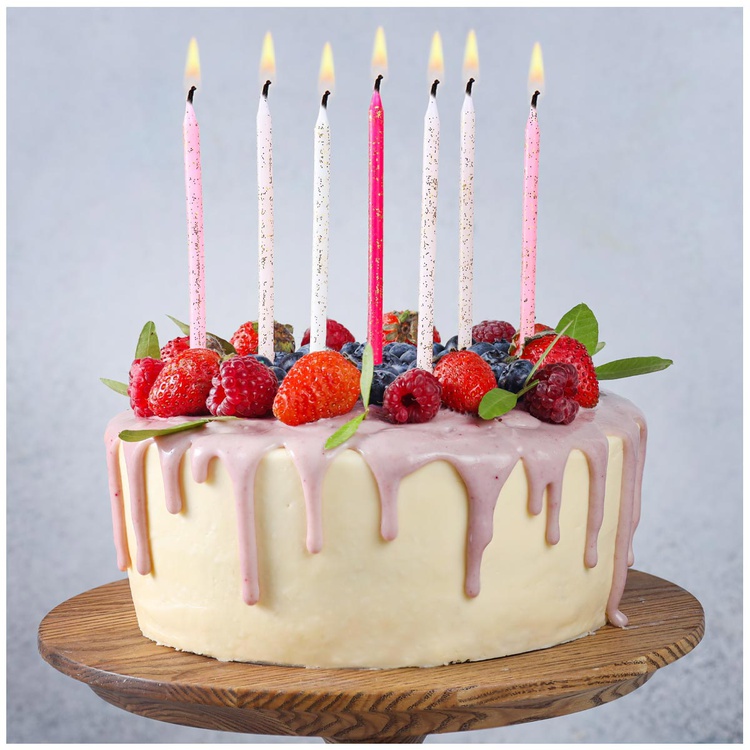 Высота каждой свечи составляет 14 см, а диаметр - 0,5 см. Это оптимальные размеры, которые позволяют свечам выглядеть аккуратно и гармонично на торте.